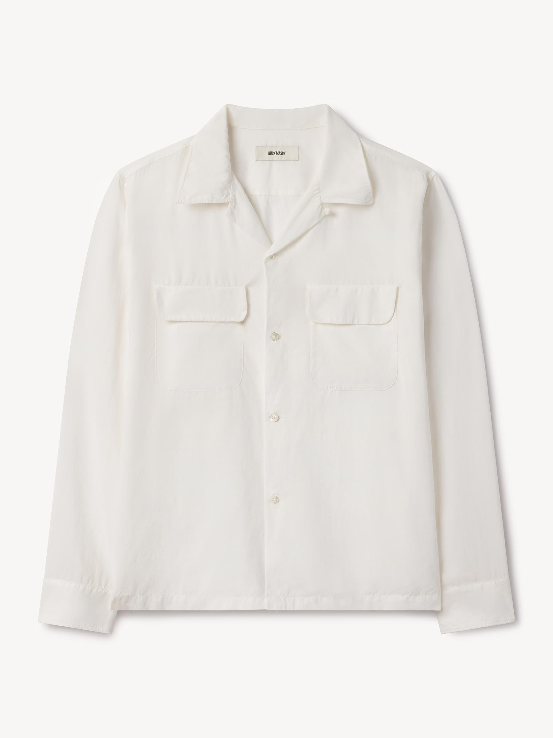 The Casita Camp Shirt channels the casual poise of 1950s and ’60s resort wear. Woven for warmer weather, the ultralight yarn-dyed Tencel brings a smooth, airy drape to cool summer nights. Designed with a period fit, a straight hem, side vents, and authentic details like a collar loop button fastener, patch-and-flap chest pockets, and real troca shell buttons. Finished with single-needle construction, a French placket, and a garment rinse for a soft, lived-in feel.