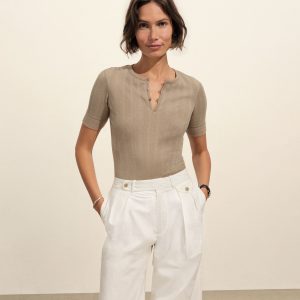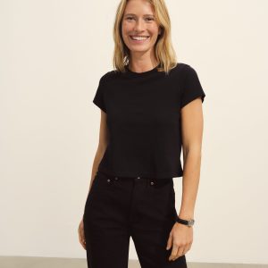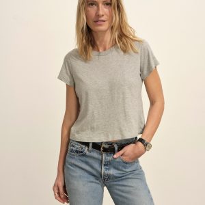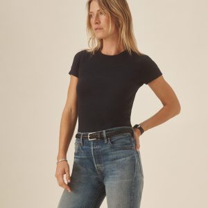 Slim fit crewneck tee cut from a supersoft 130 GSM blend of bamboo, cotton, and wool. Features a straight hem, a self bound neck, and raised armholes that hug the contours of the shoulders. Garment washed for a lived-in feel.