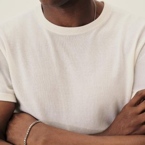 A fully fashioned tee that draws inspiration from the lifestyle surrounding Lake Como in the 1960s. Knit from an ultrafine blend of yarn-dyed organic Egyptian cotton and cashmere, spun in Italy. Featuring tubular finishes at the cuffs and bottom hem, and a shallow sleeve cap.