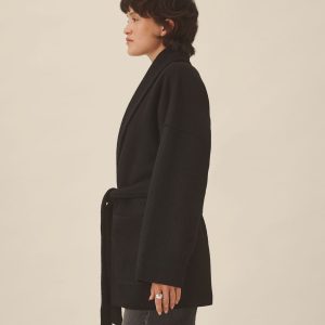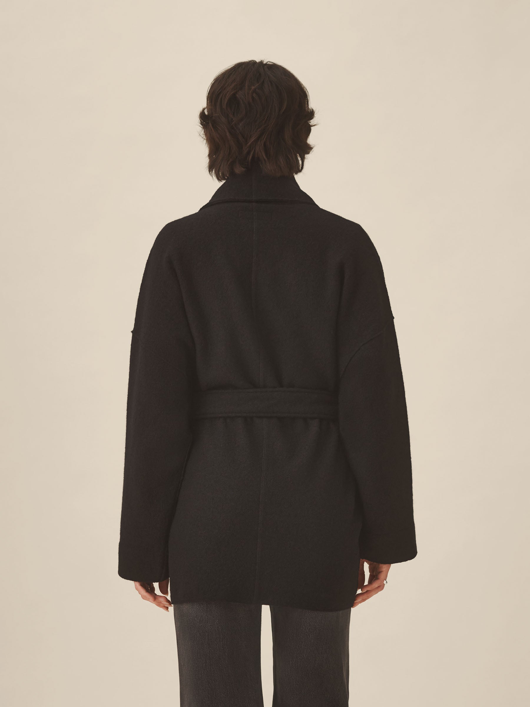 An easy layering piece that combines the warmth of a sweater with the function of a coat. Knit from merino wool yarns that are twice‑boiled into felt, it delivers insulation, breathability, and a naturally draped finish. Cut in a relaxed, throw‑on silhouette.