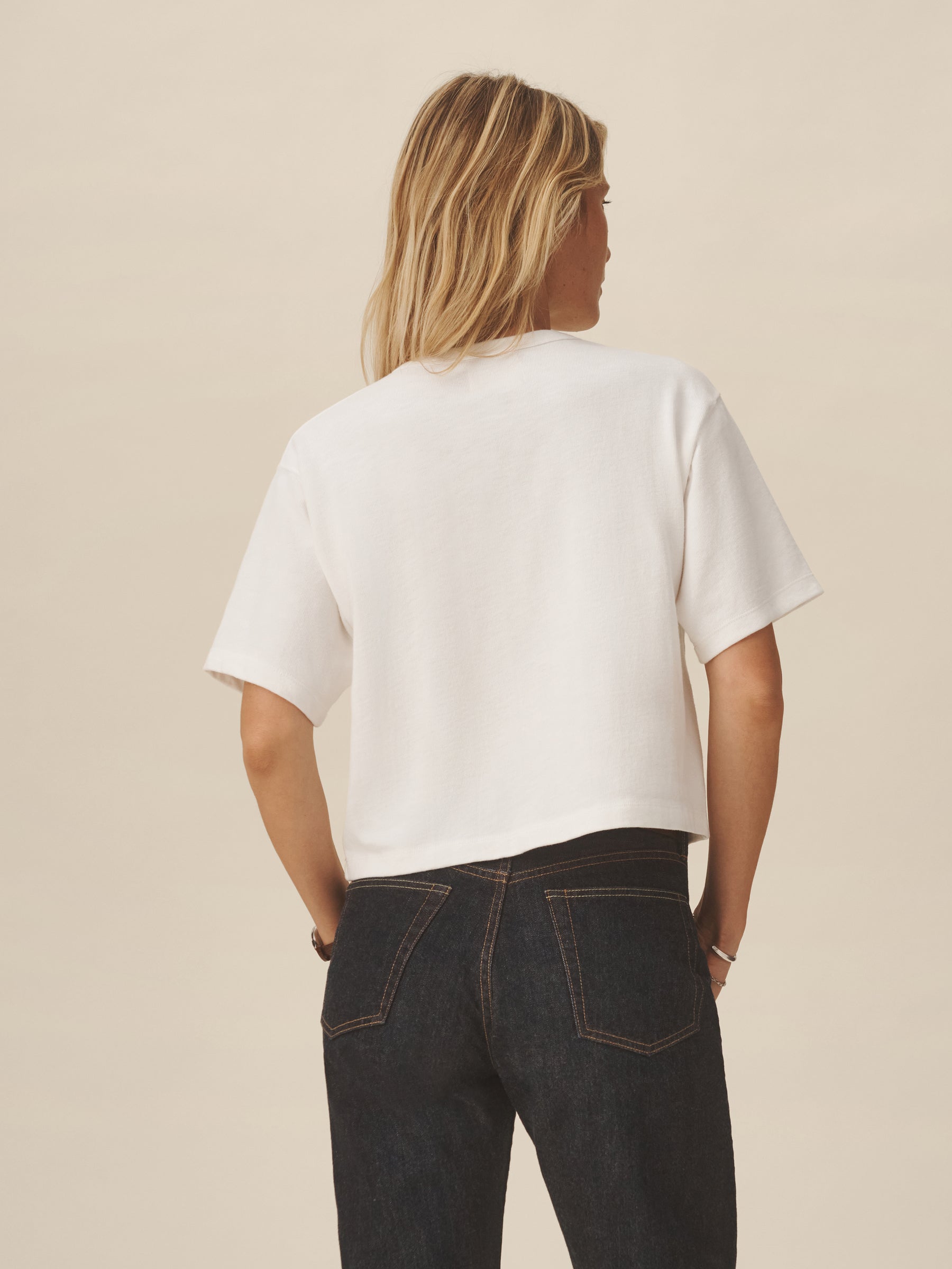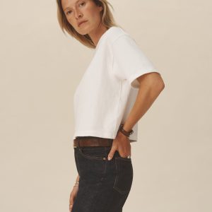 Cut from a heavyweight 310 GSM cotton, this slightly oversized, boxy crewneck tee has a straight hemline that hits right at your natural waist. Double-washed for a soft, smooth texture and consistent fit.