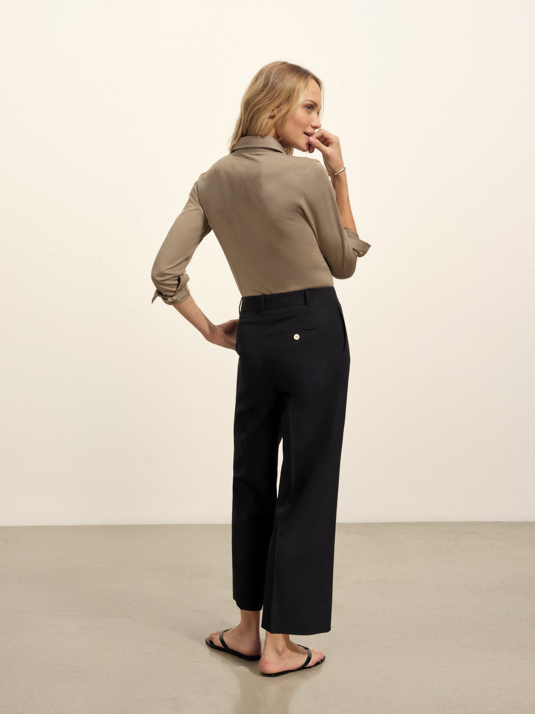 Silky, relaxed slim-fit jersey-knit button-down crafted from a blend of EcoCell and Pima cotton, featuring a collar backed with combo jersey and buttoned sleeve openings. Garment washed for an authentic vintage hand feel and finished with mother of pearl buttons.