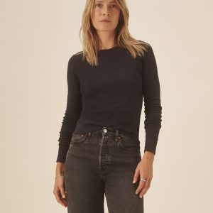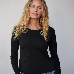 “Slim fit long sleeve henley cut from extra fine 170 GSM cotton with recycled content that holds its shape. Details include a a three-button loop placket with corozo fish eye buttons, and straight, clean finished hem and cuffs. Garment washed for a lived-in feel.