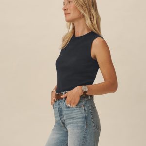 Classic slim-fit, vintage-inspired muscle tank made from a textured blend of 60% recycled cotton and 40% cotton rib that holds its shape.