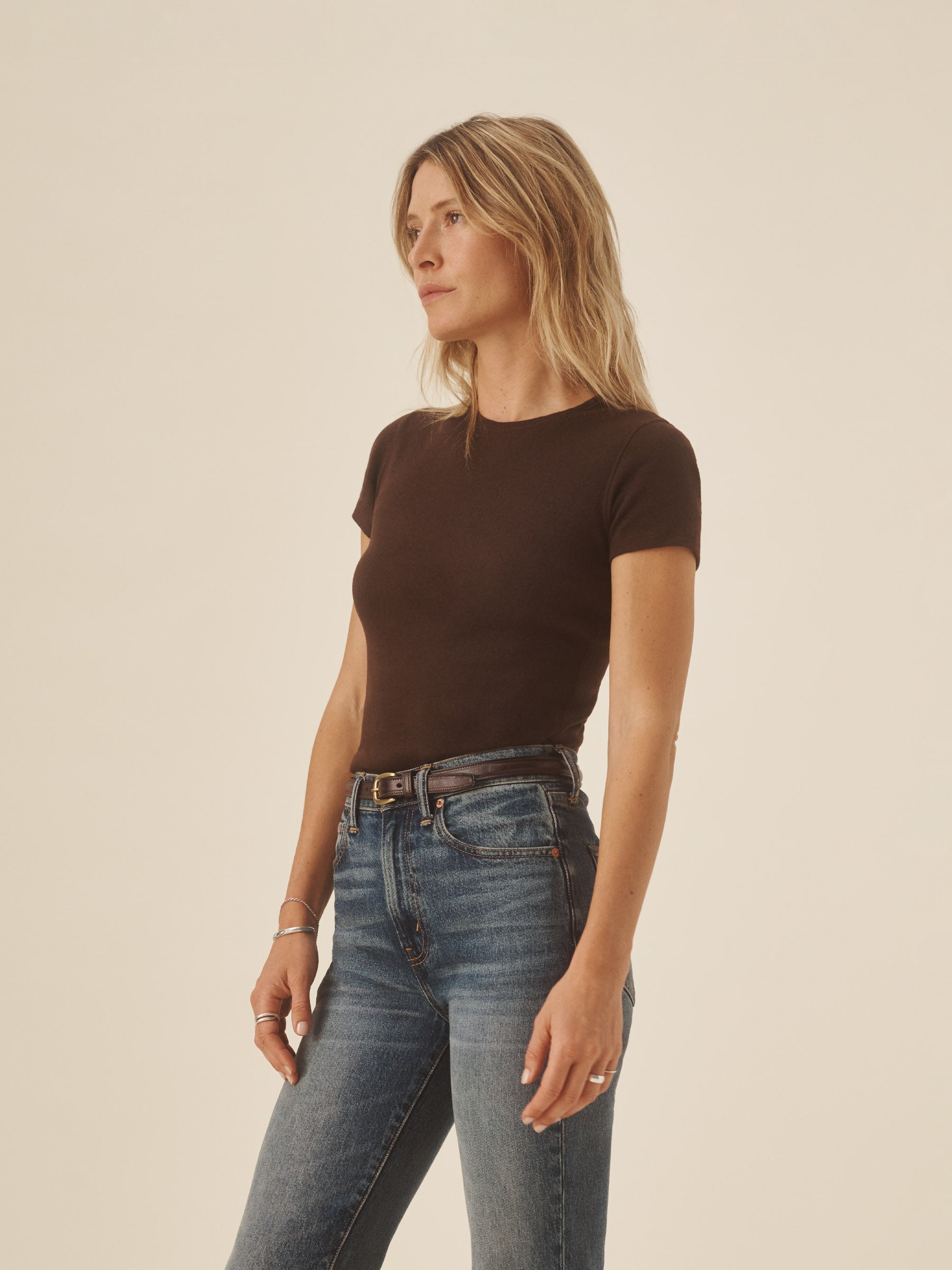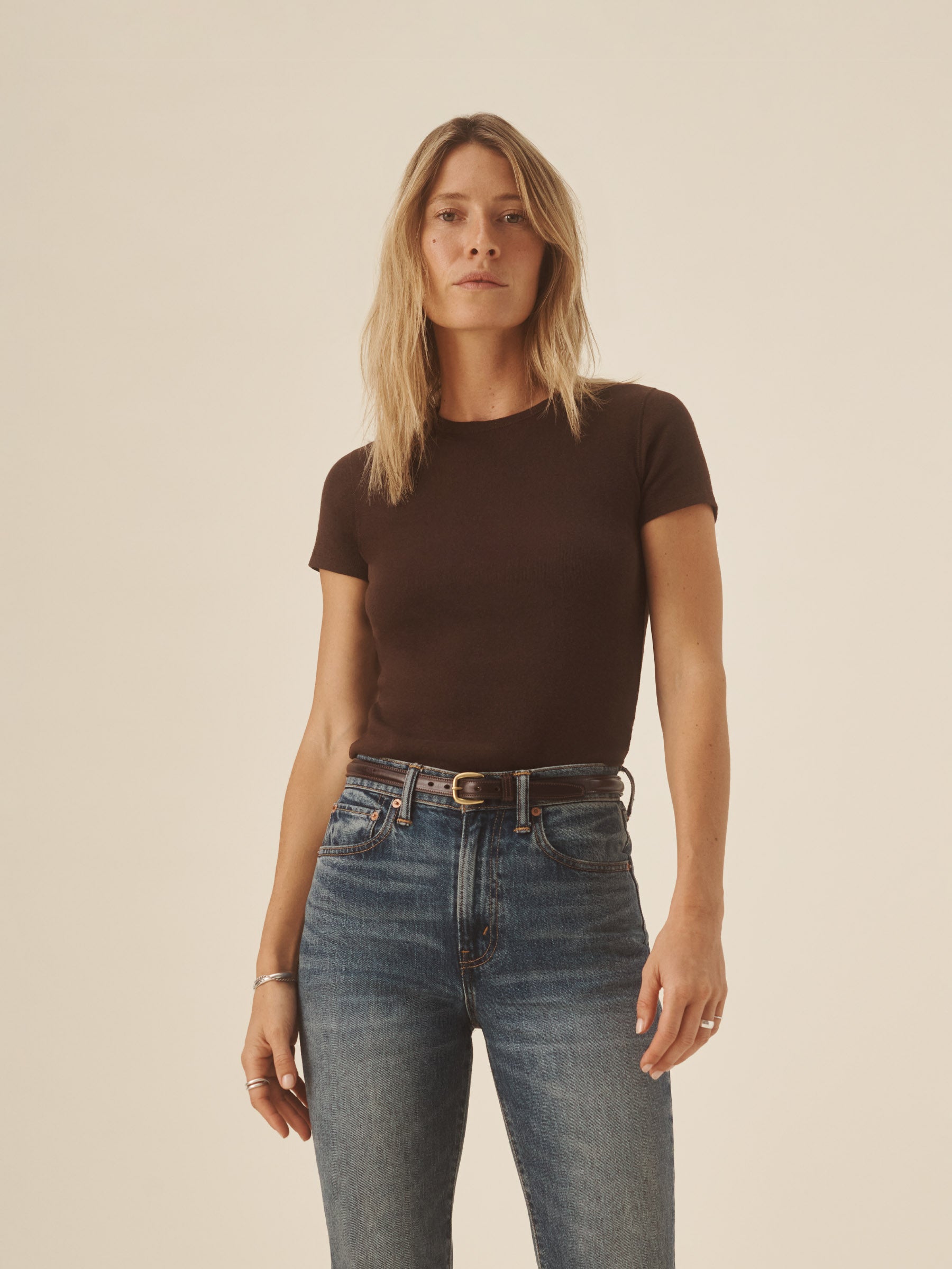 Our take on the classic baby tee, crafted from a superfine blend of new and recycled cotton with a subtle, textured rib. Garment washed for a lived-in look and feel.