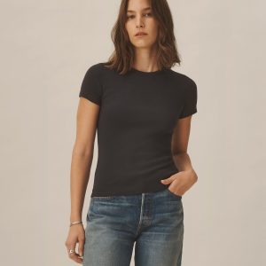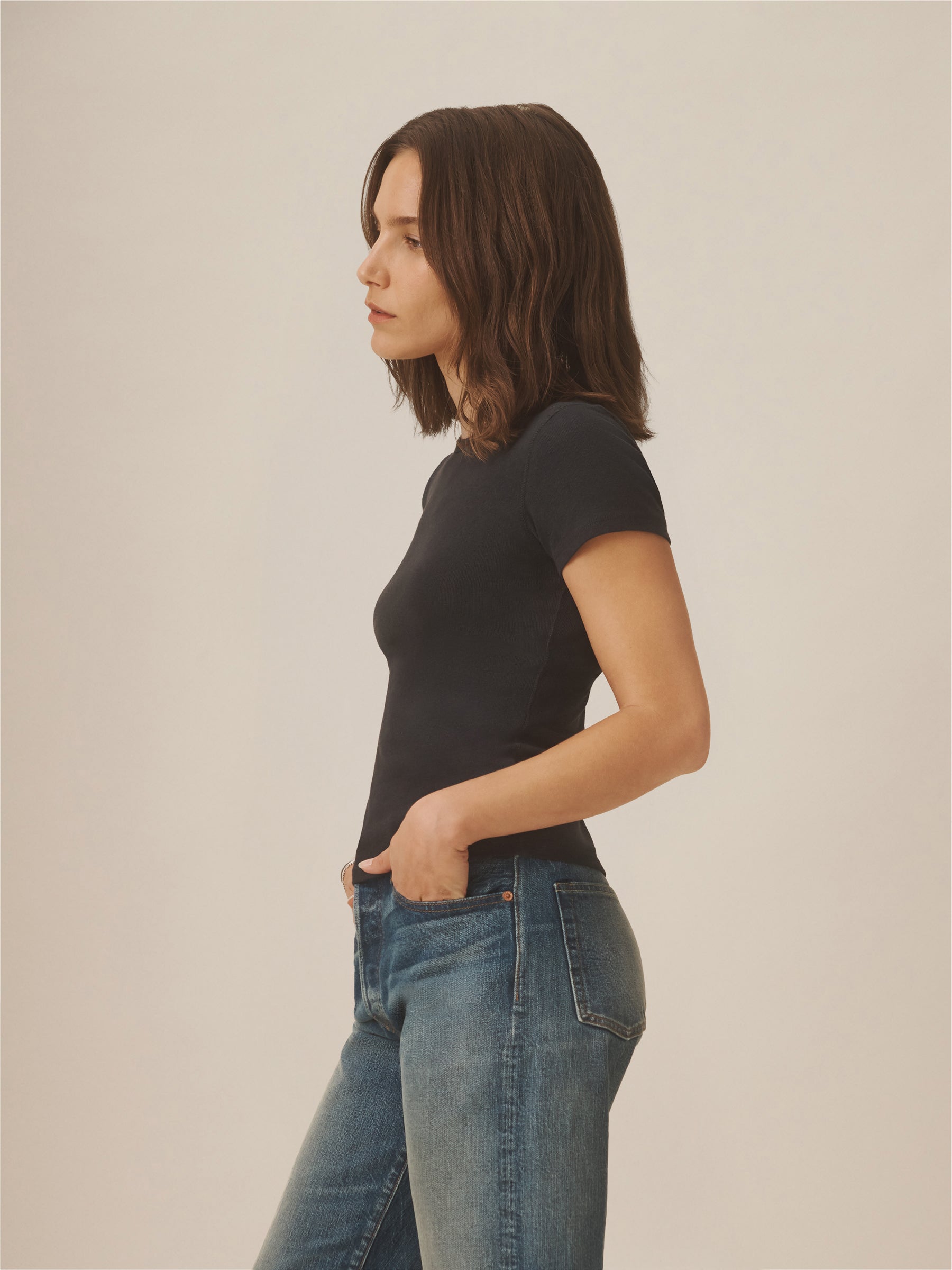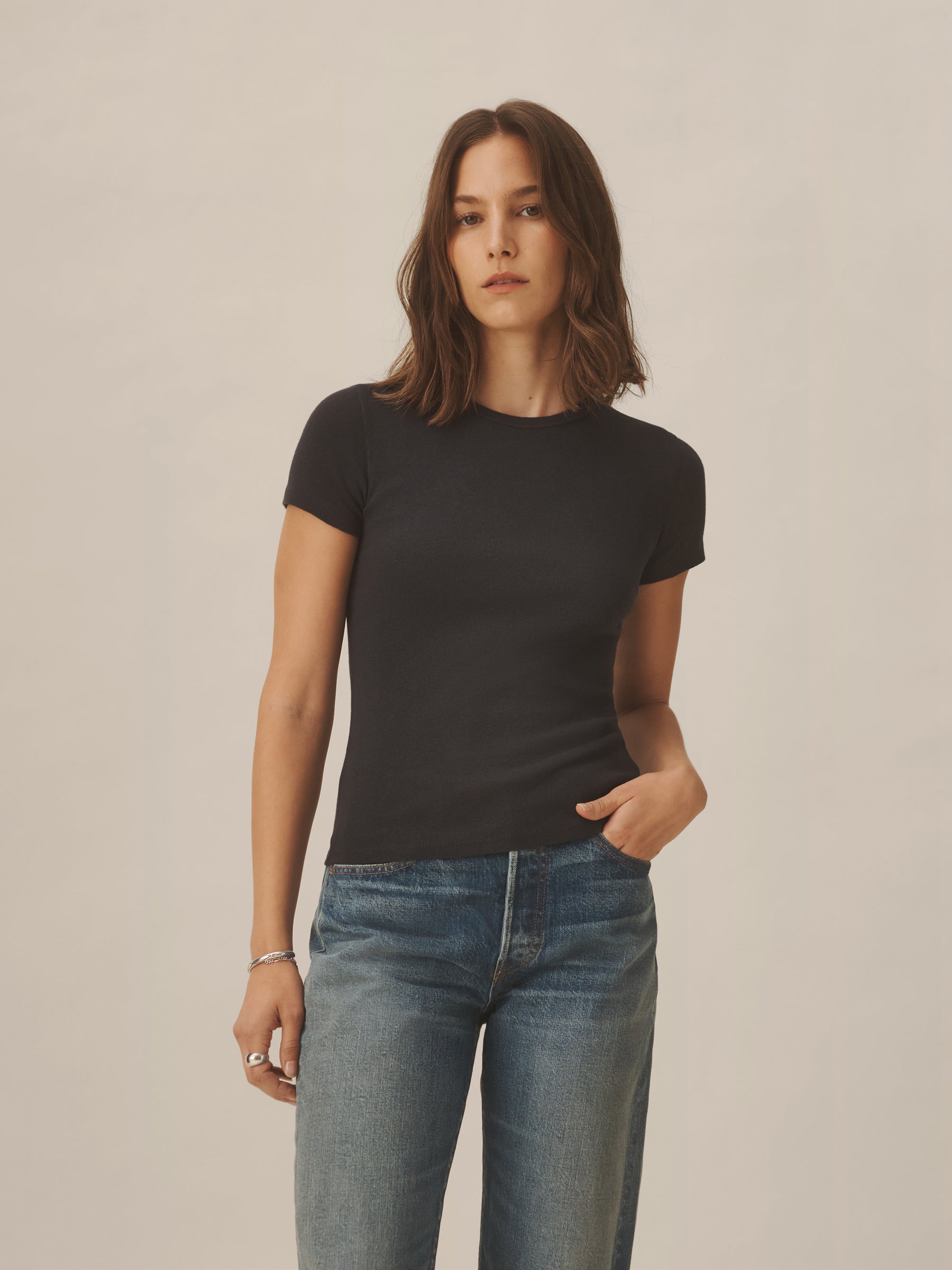 Our take on the classic baby tee, crafted from a superfine blend of new and recycled cotton with a subtle, textured rib. Garment washed for a lived-in look and feel.