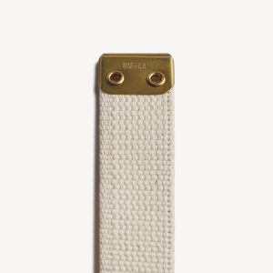 The Holdfast is modeled after the original U.S. Army “Mills” belt issued from 1904–1938 and commonly used through WWI. Cut from durable cotton webbing, it’s finished with a removable brass buckle for trimming to your exact fit or wearing long for a more relaxed style. Offered in alpha sizing, each belt can be easily customized to preference.