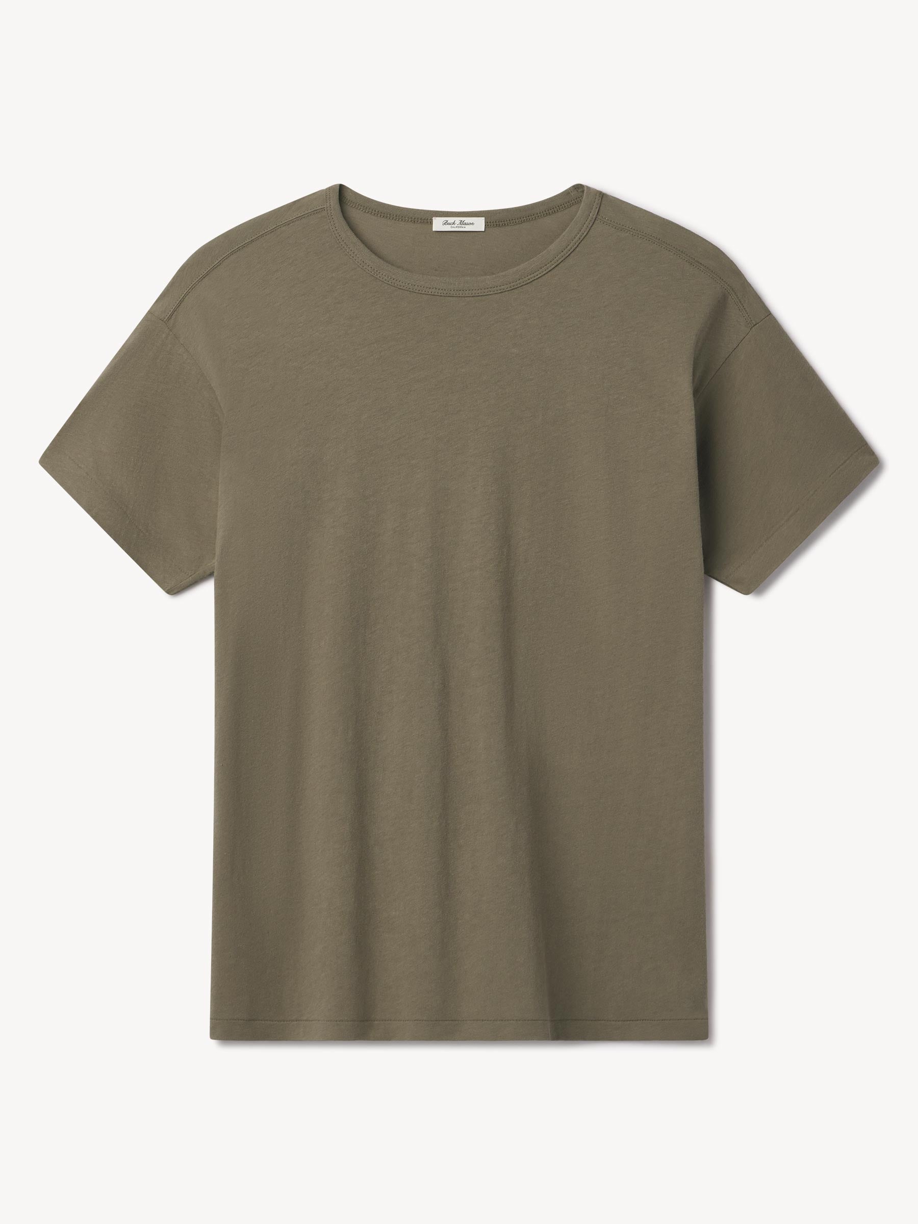 Crafted from a custom-spun, super fine 56 singles blended cotton-linen yarn, spun and knit exclusively in Japan. This fabric is designed to combine the smoothness of a premium yarn with the subtle texture of something more rugged. The result is a tee that’s smooth, cool, and light as air with a subtle silky hand feel. Finished with a rib-bound crewneck, blind hems at the sleeves and bottom, and overlocked seams.