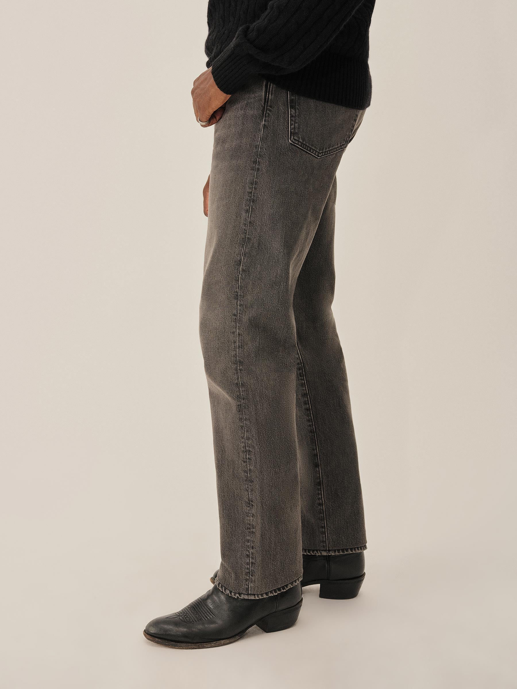 A classic 5-pocket jean in our Ford Standard fit: mid-rise, straight through the thighs with a taper below the knee. Inspired by our favorite vintage jeans, this 14 oz denim from Japan-based Kaihara mills has a hint of stretch and an organic texture that develops more character with every wear. Garment rinsed for a lived-in feel. Details include copper rivets and a metal tack button fly.