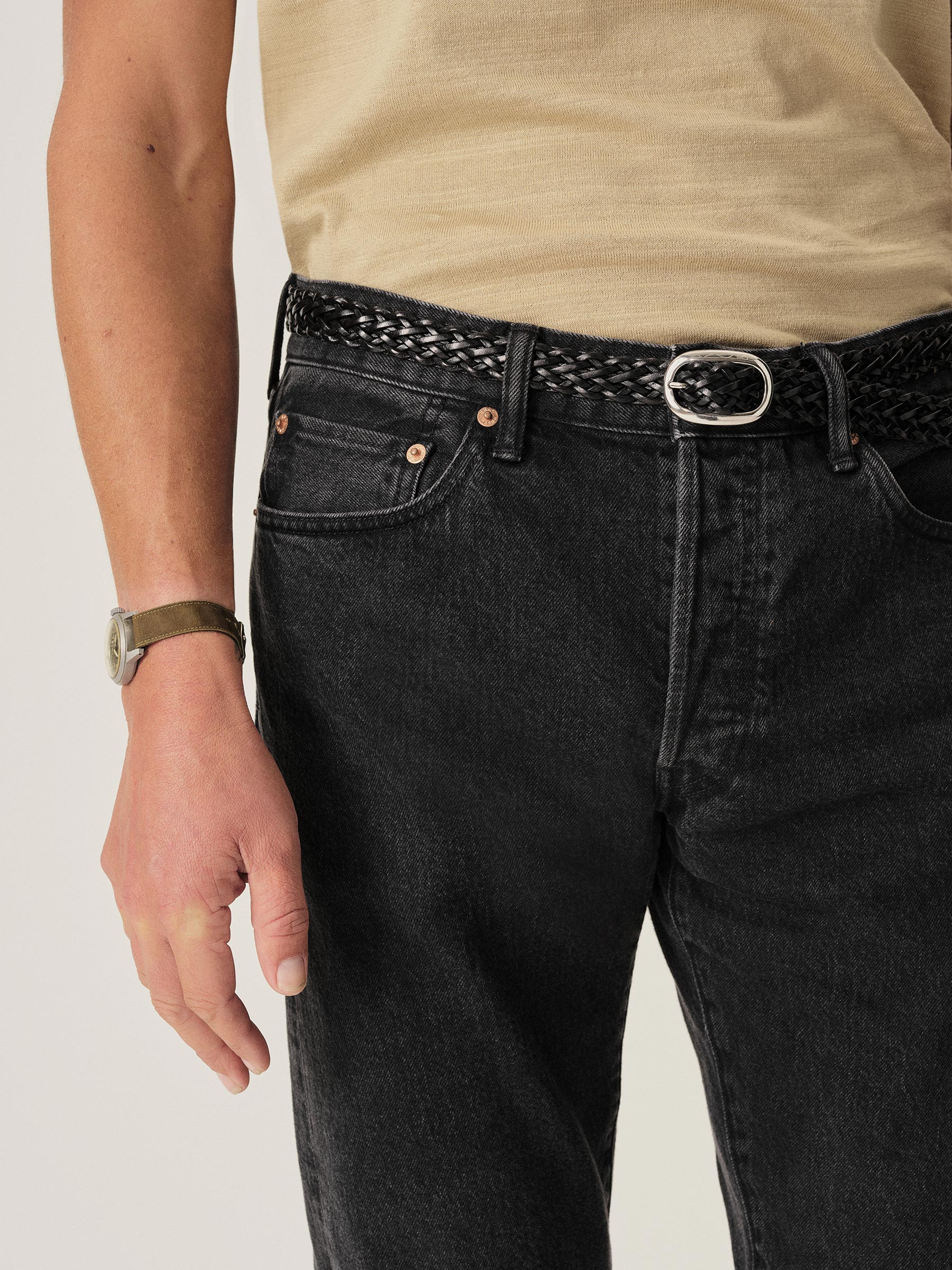 A classic 5-pocket jean in our Maverick Slim fit: Mid-rise with a clean, narrow fit through the thigh and leg. Button fly. Inspired by our favorite vintage jeans, this 14 oz denim from Japan-based Kaihara mills has a hint of stretch and an organic texture that develops more character with every wear. Garment rinsed for a lived-in feel. Details include copper rivets and a metal tack button fly.