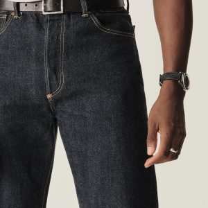 The Lee 101B is the quintessential rider jean. With a high rise and straight fit, they feature Lee’s acorn shaped back pockets, which are spaced further apart to accommodate comfort in the saddle. Modeled after the 101Bs of the 1940s, the back pockets omit the “Lazy S” stitching, but are constructed with classic Lee X bartacks, introduced in 1938. Of course, no pair of Lee’s are complete without the leather branded Lee patch on the waistband.