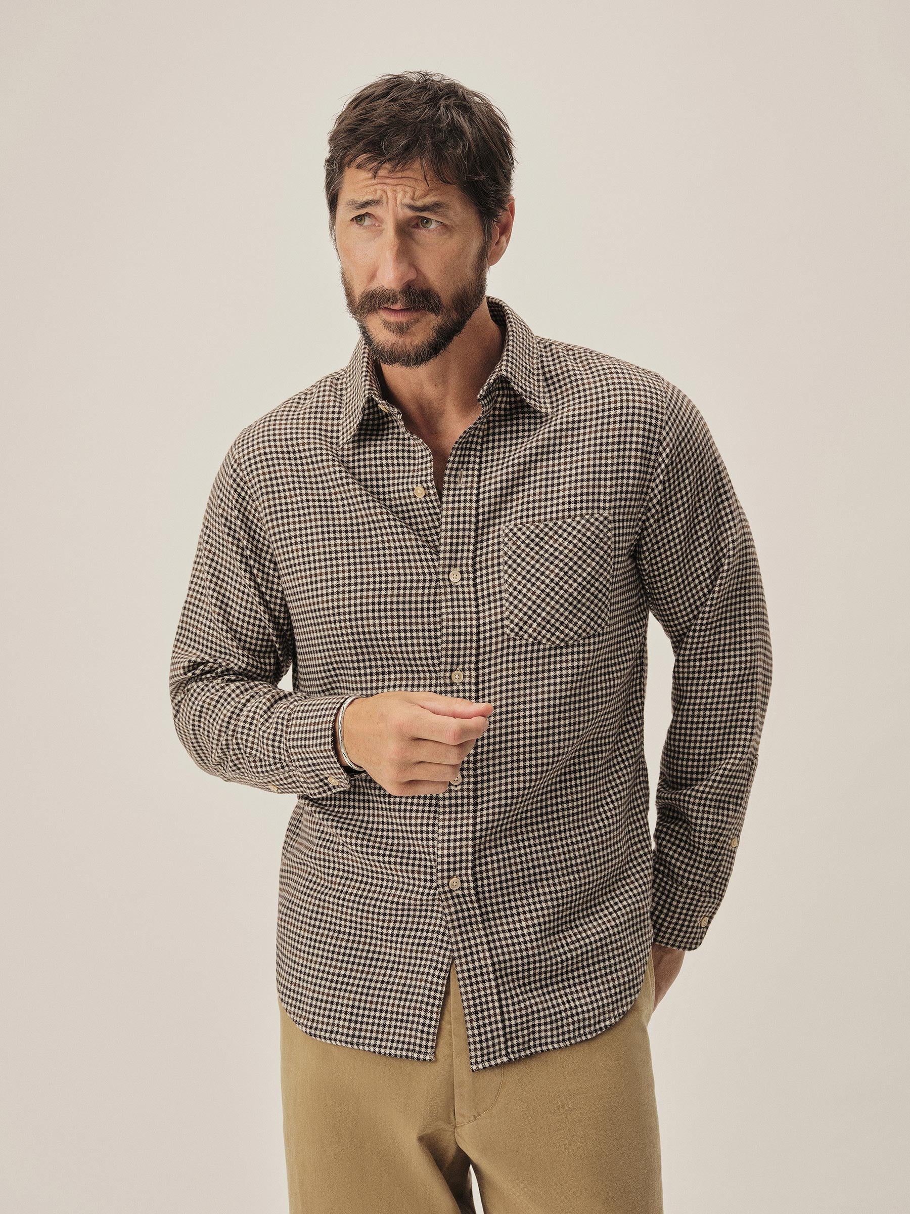 A modern flannel shirt cut from 4 oz. yarn-dyed cotton twill that’s been brushed on both sides for unparalleled softness. Features a single rounded pocket and shell buttons. Garment washed for a lived-in feel. The lightest flannel we make and the softest shirt in your closet.