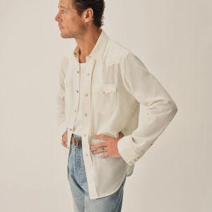 In the spirit of the ol’ Palomino, a classic fit western style shirt made from a springweight blend of cotton and wool, ideal for warm climates. The shirt has all the cowboy details like pearl snaps, a classic pointed yoke, five point pockets with pointed pocket flaps.