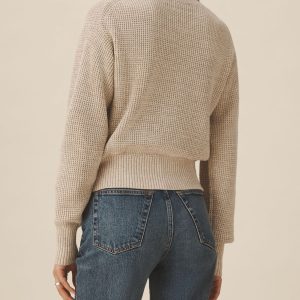 1960s inspired crewneck sweater with an easy, slim fit. Crafted from 7-gauge waffle knit yarn-dyed cotton with a light slub texture, featuring fashioning at the neck and drop-back shoulders as a nod to mid-century.