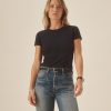 Slim fit ribbed scoop neck tank cut from 295 GSM stretch cotton that holds its shape. 2×2 rib structure—two rows of rib stitch, two rows of jersey stitch—is offset by contrast 1×1 rib at the neck. Constructed with coverstitching throughout and flatlock stitching at the side seams. Garment washed for a lived-in feel.