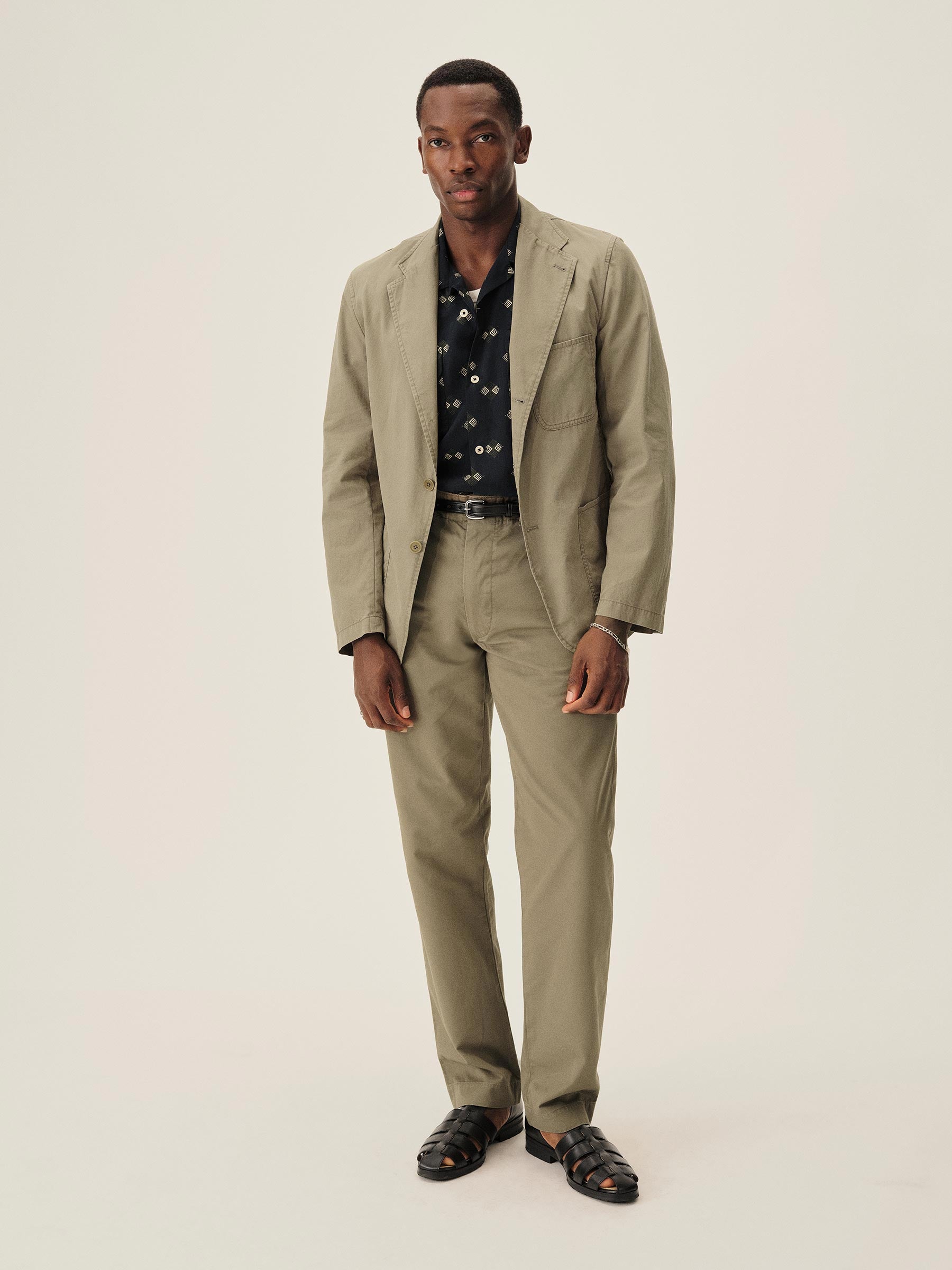Tailored 3-roll-2 button blazer inspired by timeless, vintage suiting. This iteration is made from a breathable, summerweight cotton and Tencel blend with a smooth, lightweight hand feel. Details include three patch pockets, two internal welt pockets, and a notched lapel. We left it unlined and omitted the back vent and cuff buttons for a casual, streamlined look. Constructed with hand-linked seams.